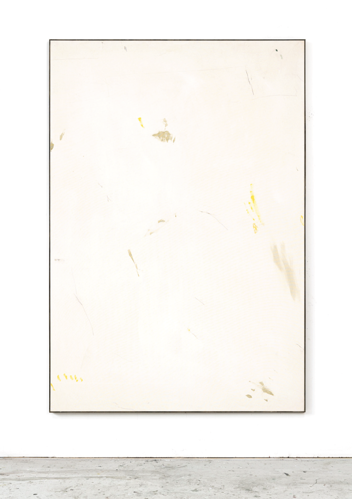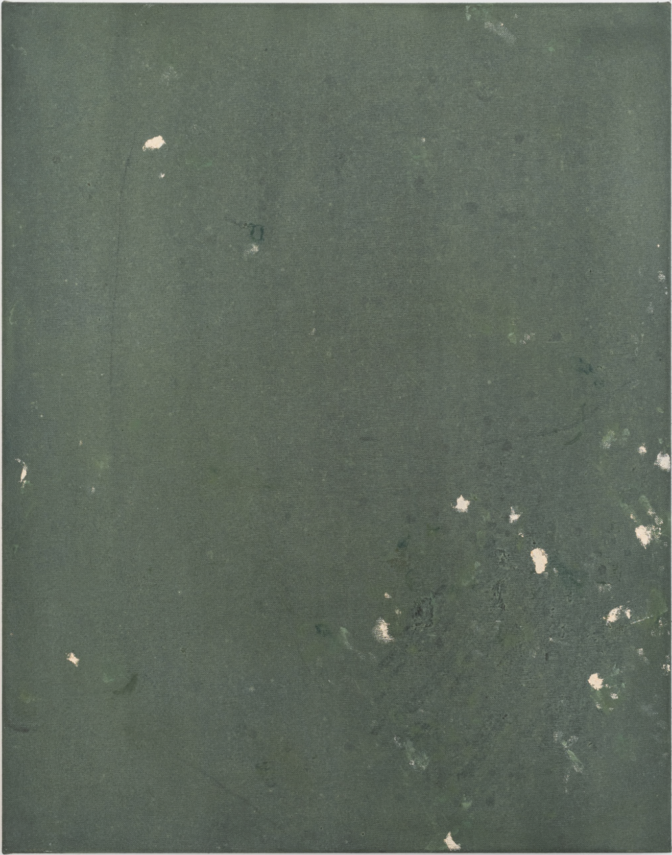 Teague’s process is rooted in a balance of control and chance. He begins with loose, unstretched canvases laid directly on the studio floor, embracing the unpredictability of unplanned marks, stains, and gestures that accumulate over time. As the work develops, he refines certain elements while leaving others untouched, creating a layered visual dialogue between accident and intention. The resulting compositions capture fleeting impressions of landscape and memory, allowing each mark and layer to resonate with a sense of impermanence.