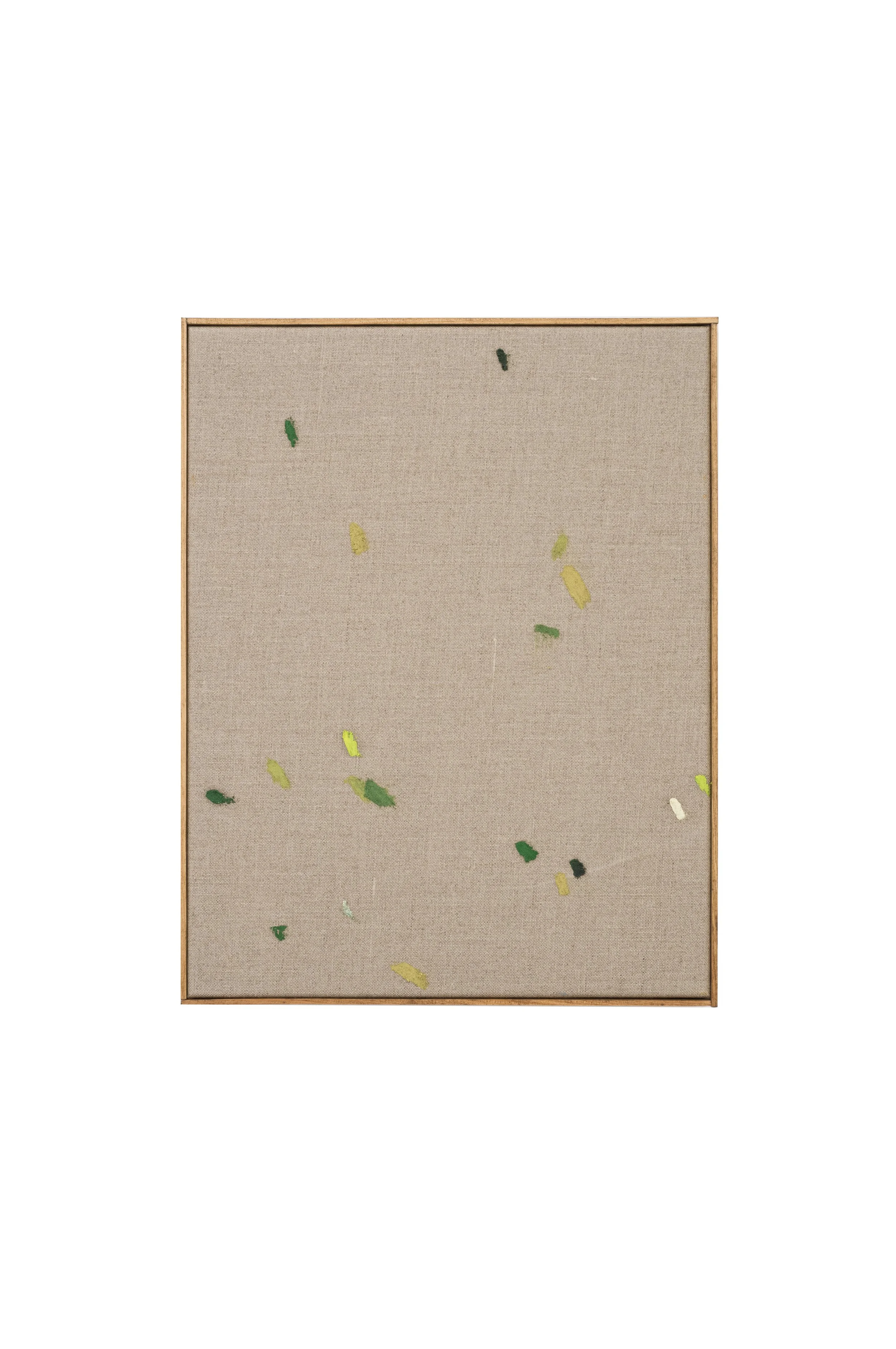 Struan Teague’s (b. 1991, Edinburgh) compositions open a space for subtle visual inquiry, balancing restraint with a sensitivity to material and form. Built from nuanced layers of oil, acrylic, graphite, ink, and conte pastels, his works reflect a measured interplay between intentional marks and the accidental textures of the canvas-creases, stains, and folds that become integral to each composition.